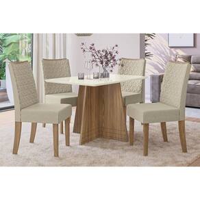 Sala de Jantar Completa Lótus Tampo Madeirado c/ Vidro 80x120cm e 4 Cadeiras 2CAD129 Nogueira/Off White/Vidro Off White - Linho Beg - Kappesberg - Blush