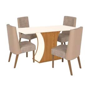 Sala de Jantar Completa Luiza SC15 Tampo Madeirado c/ Vidro Canto Curvo 160x90cm e 4 Cadeiras Anne Nature/Courano/Creme - Henn Abaixo segue os produtos do KIT: Sala de Jantar Completa Luiza SC15 Tampo Madeirado c/ Vidro Canto Curvo 160x90cm e 4 Cadeiras Anne Nature/Courano/Creme - Henn