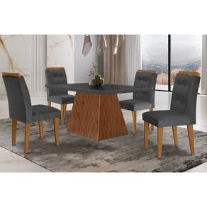 Sala De Jantar Completa Luna C- Tampo Madeirado C- Vidro Canto Curvo 120x80cm E 4 Cadeiras Imperatriz Imbuia-grafite - Suede Grafite - Rufato - Cinza