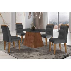 Sala De Jantar Completa Luna C- Tampo Madeirado C- Vidro Canto Curvo 120x80cm E 4 Cadeiras Imperatriz Imbuia-grafite - Suede Grafite - Rufato - Cinza
