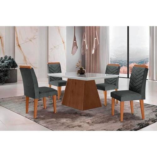 Sala De Jantar Completa Luna C/ Tampo Madeirado C/ Vidro Canto Curvo 120x80cm E 4 Cadeiras Londrina Imbuia/off White - Suede Grafite - Rufato