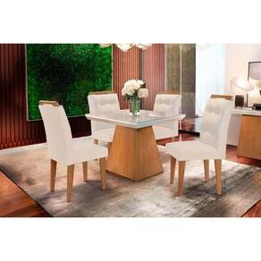 Sala de Jantar Completa Luna c/ Tampo Madeirado c/ Vidro Canto Curvo 90x90cm e 4 cadeiras Imperatriz Imbuia/Off White - Suede Creme - Rufato