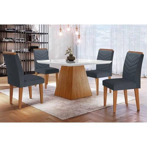 Sala De Jantar Completa Luna C/ Tampo Madeirado C/ Vidro Canto Curvo 90x90cm E 4 Cadeiras Londrina Imbuia/off White - Suede Grafite - Rufato