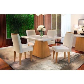 Sala de Jantar Completa Luna c/ Tampo Madeirado Canto Reto 120cm + 4 Cadeiras Lunara Imbuia/Veludo Creme - Rufato