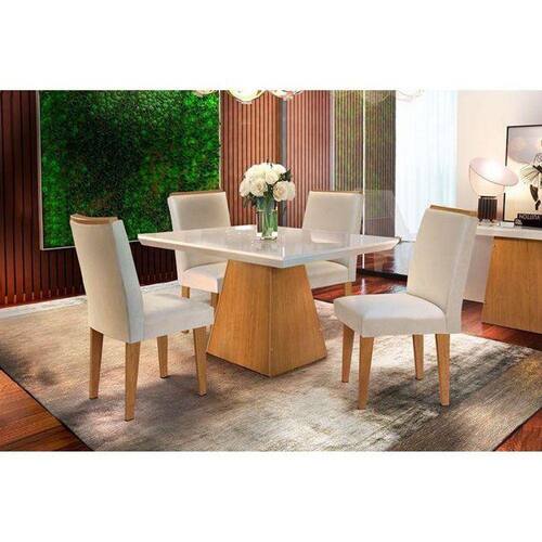 Sala de Jantar Completa Luna c/ Tampo Madeirado Canto Reto 120cm + 4 Cadeiras Lunara Imbuia/Veludo Creme - Rufato - Blush