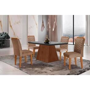 Sala de Jantar Completa Luna c/ Tampo Madeirado Vidro Canto Curvo 120x80cm e 4 cadeiras Londrina Imbuia/Grafite - Suede Capuccino - Rufato