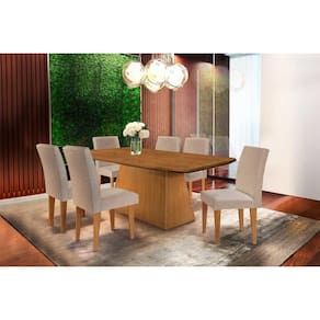 Sala de Jantar Completa Luna Tampo Madeirado Canto Curvo 180x90cm e 6 Cadeiras Grécia Capuccino/Linho Bege Turim - Rufato Abaixo segue os produtos do KIT: Sala de Jantar Completa Luna Tampo Madeirado Canto Curvo 180x90cm e 6 Cadeiras Grécia Capuccino/Linho Bege Turim - Rufato