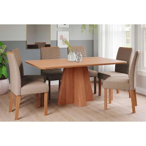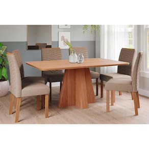 Sala de Jantar Completa Maitê Tampo Madeirado 160x80cm e 6 Cadeiras Clarice Cinamomo - Carvalho/Linho Bege - Cimol Abaixo segue os produtos do KIT: Sala de Jantar Completa Maitê Tampo Madeirado 160x80cm e 6 Cadeiras Clarice Cinamomo - Carvalho/Linho Bege - Cimol