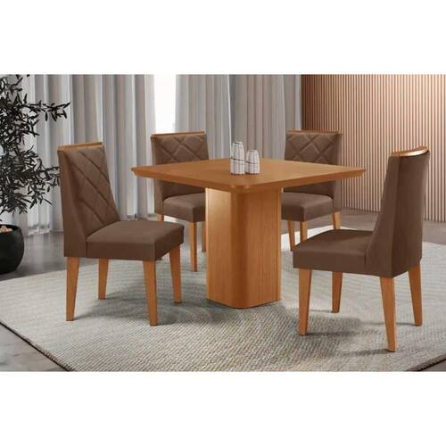 Sala de Jantar Completa Maldivas c/ Tampo Madeirado Canto Curvo 90x90cm e 4 Cadeiras Pietá Naturale - Suede Marrom - Rufato Abaixo segue os produtos do KIT: Sala de Jantar Completa Maldivas c/ Tampo Madeirado Canto Curvo 90x90cm e 4 Cadeiras Pietá Naturale - Suede Marrom - Rufato
