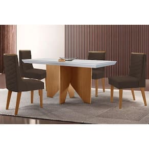 Sala de Jantar Completa Nevada c/ Tampo Madeirado c/ Vidro Canto Curvo 120x80cm e 4 Cadeiras Dafne Naturale/Off White - Suede Marrom - Rufato Abaixo segue os produtos do KIT: Sala de Jantar Completa Nevada c/ Tampo Madeirado c/ Vidro Canto Curvo 120x80cm e 4 Cadeiras Dafne Naturale/Off White - Suede Marrom - Rufato