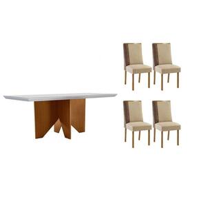 Sala de Jantar Completa Nevada c/ Tampo Madeirado c/ Vidro Canto Curvo 120x80cm e 4 Cadeiras Tilia Naturale/Off White - Linho Bege - Rufato Abaixo segue os produtos do KIT: Sala de Jantar Completa Nevada c/ Tampo Madeirado c/ Vidro Canto Curvo 120x80cm e 4 Cadeiras Tilia Naturale/Off White - Linho Bege - Rufato