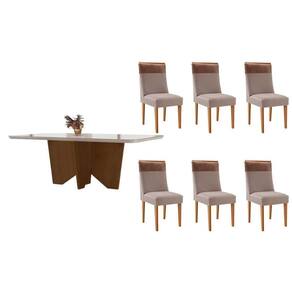 Sala de Jantar Completa Nevada c/ Tampo Madeirado c/ Vidro Canto Curvo 180x90cm e 6 Cadeiras Jaspe Naturale/Off White - Linho Capuccino - Rufato Abaixo segue os produtos do KIT: Sala de Jantar Completa Nevada c/ Tampo Madeirado c/ Vidro Canto Curvo 180x90cm e 6 Cadeiras Jaspe Naturale/Off White - Linho Capuccino - Rufato