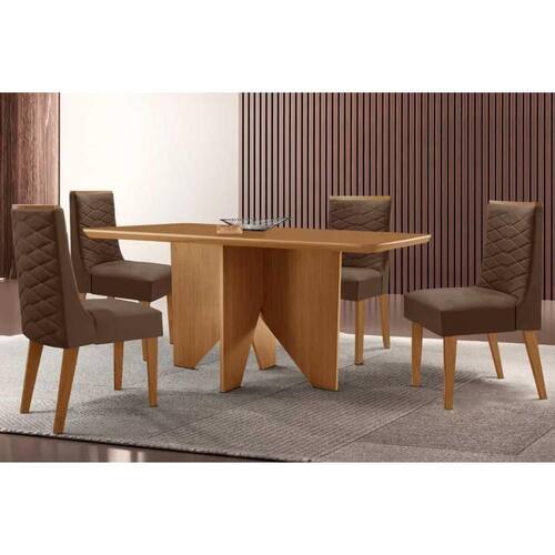 Sala de Jantar Completa Nevada c/ Tampo Madeirado Canto Curvo 120x80cm e 4 Cadeiras Dafne Naturale - Suede Marrom - Rufato Abaixo segue os produtos do KIT: Sala de Jantar Completa Nevada c/ Tampo Madeirado Canto Curvo 120x80cm e 4 Cadeiras Dafne Naturale - Suede Marrom - Rufato