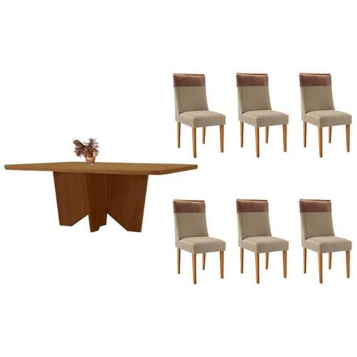 Sala de Jantar Completa Nevada c/ Tampo Madeirado Canto Curvo 180x90cm e 6 Cadeiras Jaspe Naturale - Linho Bege - Rufato Abaixo segue os produtos do KIT: Sala de Jantar Completa Nevada c/ Tampo Madeirado Canto Curvo 180x90cm e 6 Cadeiras Jaspe Naturale - Linho Bege - Rufato