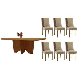 Sala de Jantar Completa Nevada c/ Tampo Madeirado Canto Curvo 180x90cm e 6 Cadeiras Tilia Naturale - Suede Creme - Rufato Abaixo segue os produtos do KIT: Sala de Jantar Completa Nevada c/ Tampo Madeirado Canto Curvo 180x90cm e 6 Cadeiras Tilia Naturale - Suede Creme - Rufato