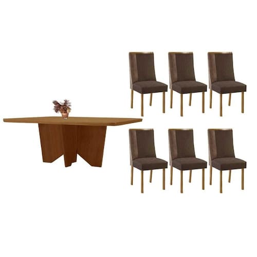 Sala de Jantar Completa Nevada c/ Tampo Madeirado Canto Curvo 180x90cm e 6 Cadeiras Tilia Naturale - Suede Marrom - Rufato Abaixo segue os produtos do KIT: Sala de Jantar Completa Nevada c/ Tampo Madeirado Canto Curvo 180x90cm e 6 Cadeiras Tilia Naturale - Suede Marrom - Rufato
