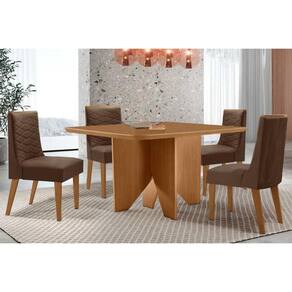 Sala de Jantar Completa Nevada c/ Tampo Madeirado Canto Curvo 90x90cm e 4 Cadeiras Maldivas Naturale - Suede Marrom - Rufato Abaixo segue os produtos do KIT: Sala de Jantar Completa Nevada c/ Tampo Madeirado Canto Curvo 90x90cm e 4 Cadeiras Maldivas Naturale - Suede Marrom - Rufato