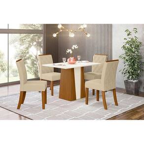 Sala de Jantar Completa Orus c/ Tampo Madeirado 120cm + 4 Cadeiras Vita Nature/Veludo Light Linho - Henn