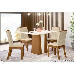 Sala de Jantar Completa Orus Tampo Madeirado c/ Vidro 120x80cm e 4 Cadeiras Isa Nature/Veludo Light Linho - Henn