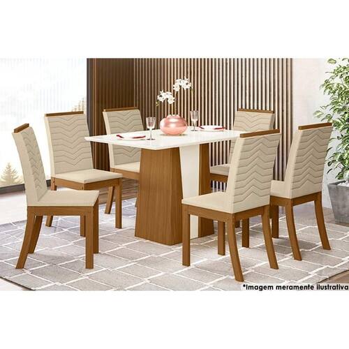 Sala de Jantar Completa Orus Tampo Madeirado c/ Vidro 120x80cm e 6 Cadeiras Isa Nature/Veludo Light Linho - Henn Abaixo segue os produtos do KIT: Sala de Jantar Completa Orus Tampo Madeirado c/ Vidro 120x80cm e 6 Cadeiras Isa Nature/Veludo Light Linho - Henn