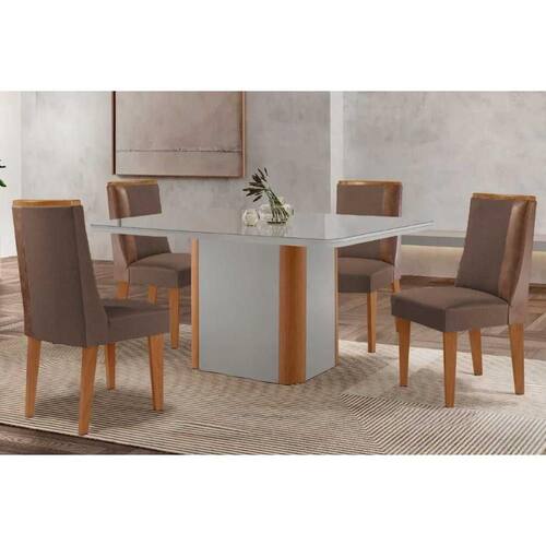 Sala de Jantar Completa Pietá c/ Tampo Madeirado c/ Vidro Canto Curvo 120x80cm e 4 Cadeiras Tilia Naturale/Off White - Suede Marrom - Rufato Abaixo segue os produtos do KIT: Sala de Jantar Completa Pietá c/ Tampo Madeirado c/ Vidro Canto Curvo 120x80cm e 4 Cadeiras Tilia Naturale/Off White - Suede Marrom - Rufato