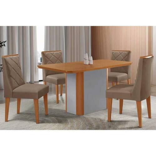 Sala de Jantar Completa Pietá c/ Tampo Madeirado Canto Curvo 120x80cm e 4 Cadeiras Pietá Naturale/Off White - Suede Capuccino - Rufato Abaixo segue os produtos do KIT: Sala de Jantar Completa Pietá c/ Tampo Madeirado Canto Curvo 120x80cm e 4 Cadeiras Pietá Naturale/Off White - Suede Capuccino - Rufato