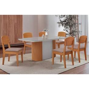 Sala de Jantar Completa Pilar c/ Tampo Madeirado c/ Vidro Canto Curvo 180x90cm e 6 Cadeiras Havana Naturale/Off White - Linho Capuccino - Rufato Abaixo segue os produtos do KIT: Sala de Jantar Completa Pilar c/ Tampo Madeirado c/ Vidro Canto Curvo 180x90cm e 6 Cadeiras Havana Naturale/Off White - Linho Capuccino - Rufato