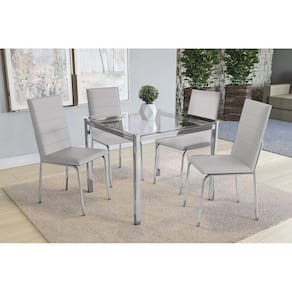 Sala de Jantar Completa Reno c/ Tampo Vidro 90cm + 4 Cadeiras Amsterdã Cromado/Courano Branco - Kappesberg