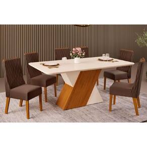 Sala De Jantar Completa Rubi C/ Tampo Madeirado C/ Vidro 170x90cm E 6 Cadeiras Jade Freijo/off White/off White - Suede Moca - Dj Móveis