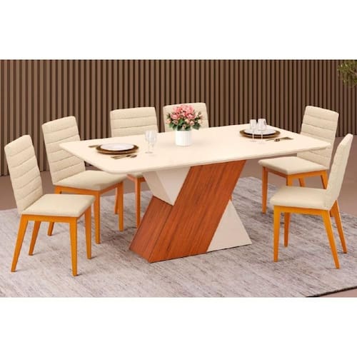 Sala de Jantar Completa Rubi c/ Tampo Madeirado c/ Vidro 170x90cm e 6 Cadeiras Sofia Freijo/Off White/Off White - Ipe/Linho Neve - DJ Móveis Abaixo segue os produtos do KIT: Sala de Jantar Completa Rubi c/ Tampo Madeirado c/ Vidro 170x90cm e 6 Cadeiras Sofia Freijo/Off White/Off White - Ipe/Linho Neve - DJ Móveis