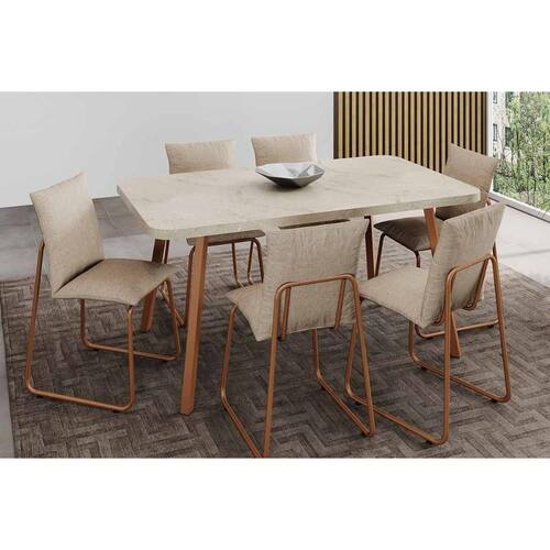 Sala de Jantar Completa Stellar 1597 Aço c/ Tampo Madeirado 160x90cm e 6 Cadeiras Soft Rose/Petra - Rose/Areia - Carraro Abaixo segue os produtos do KIT: Sala de Jantar Completa Stellar 1597 Aço c/ Tampo Madeirado 160x90cm e 6 Cadeiras Soft Rose/Petra - Rose/Areia - Carraro