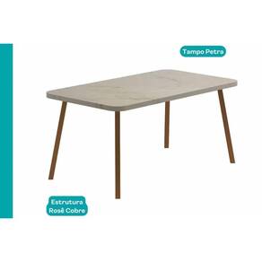 Mesa de Sala Jantar Stellar 1597 Aço c/ Tampo Madeirado 160x90cm Rose/Petra - Carraro