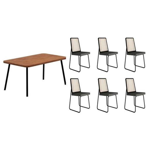 Sala de Jantar Completa Stellar 1597 Aço c/ Tampo Madeirado 160x90cm e 6 Cadeiras Wood Preto/Nogal - Preto/Grafite/Tela Sintetica - Carraro Abaixo segue os produtos do KIT: Sala de Jantar Completa Stellar 1597 Aço c/ Tampo Madeirado 160x90cm e 6 Cadeiras Wood Preto/Nogal - Preto/Grafite/Tela Sintetica - Carraro