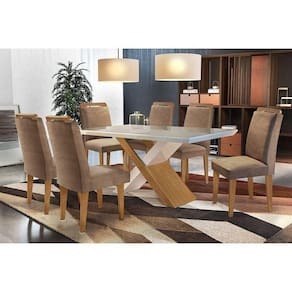 Sala de Jantar Completa Imperatriz c/ Tampo Madeirado c/ Vidro Canto Reto 180cm + 6 Cadeiras Athenas Imbuia/Chocolate Capuccino - Rufato