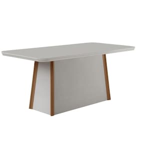 Mesa de Sala Jantar Tília c/ Tampo Madeirado c/ Vidro Canto Curvo 120X80cm Off White/Naturale/Off White - Rufato