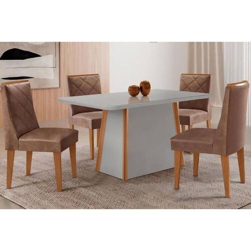 Sala de Jantar Completa Tilia c/ Tampo Madeirado c/ Vidro Canto Curvo 120x80cm e 4 Cadeiras Pietá Naturale/Off White - Corano Capuccino - Rufato Abaixo segue os produtos do KIT: Sala de Jantar Completa Tilia c/ Tampo Madeirado c/ Vidro Canto Curvo 120x80cm e 4 Cadeiras Pietá Naturale/Off White - Corano Capuccino - Rufato