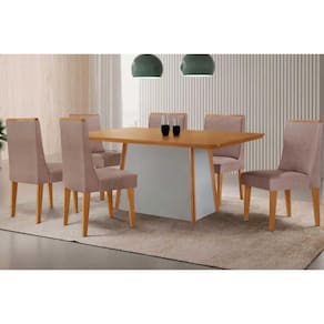 Mesa de Sala Jantar Tília c/ Tampo Madeirado c/ Canto Curvo 120X80cm Off White/Naturale/Naturale - Rufato