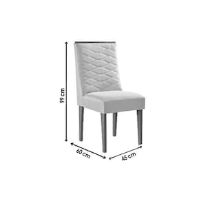 Dimensões(Cm): Comprimento(Profundidade): 60cm x Largura: 45cm x Altura: 99cm Material de Estrutura - Estrutura 100% MDP Estilo do Móvel - Clássico Tipo de Pintura - UV Tipo de Acabamento da Pintura - Fosco Forração do Revestimento - Suede Tipo do Assento - Estofado Altura do Assento Até o Chão (cm) - 45 cm de altura do assento até o chão Tipo de Encosto - Estofado Tipo dos Pés - Pés em MDF Quantidade de Pés - Móvel possui 4 pés Recomendações de Uso - Instruções de Cuidado Montagem do Produto - Desmontável Nossa Avaliação - Qualidade Muito Boa Certificação de Qualidade - Qualidade Aprovada Garantia - 3 meses