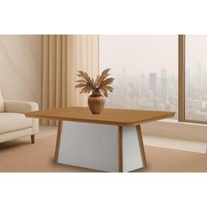 Mesa de Sala Jantar Tília c/ Tampo Madeirado c/ Canto Curvo 120X80cm Off White/Naturale/Naturale - Rufato