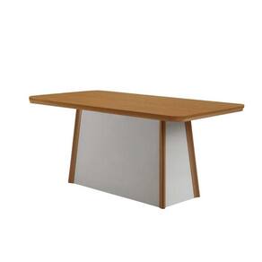 Mesa de Sala Jantar Tília c/ Tampo Madeirado c/ Canto Curvo 180X90cm Off White/Naturale/Naturale - Rufato