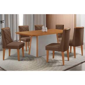 Sala de Jantar Completa Tilia c/ Tampo Madeirado Canto Curvo 180x90cm e 6 Cadeiras Pietá Naturale/Off White - Suede Marrom - Rufato Abaixo segue os produtos do KIT: Sala de Jantar Completa Tilia c/ Tampo Madeirado Canto Curvo 180x90cm e 6 Cadeiras Pietá Naturale/Off White - Suede Marrom - Rufato