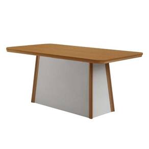 Mesa de Sala Jantar Tília c/ Tampo Madeirado c/ Canto Curvo 180X90cm Off White/Naturale/Naturale - Rufato