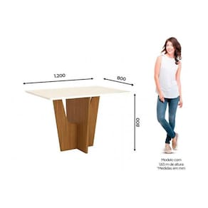 Mesa de Sala Jantar Vértice SC37 c/Tampo Madeirado Vidro Reto 120x80cm Nature/Off White - Henn