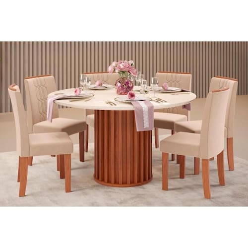 Sala de Jantar Completa Viena Tampo Madeirado c/ Vidro 136cm e 6 Cadeiras Zoe Freijo/Off White - Suede Creme - DJ Móveis Abaixo segue os produtos do KIT: Sala de Jantar Completa Viena Tampo Madeirado c/ Vidro 136cm e 6 Cadeiras Zoe Freijo/Off White - Suede Creme - DJ Móveis