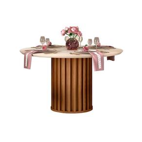 Mesa de Sala Jantar Viena c/ Tampo Madeirado c/ Vidro 136cm Freijó/Off White - DJ Móveis