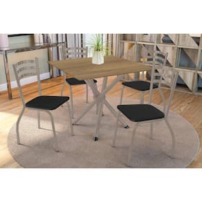 Sala de Jantar Completa Volga c/ Tampo de Madeira 90cm e 4 Cadeiras Portugal Niquel/Nogueira - Courano Preto - Kappesberg Abaixo segue os produtos do KIT: Sala de Jantar Completa Volga c/ Tampo de Madeira 90cm e 4 Cadeiras Portugal Niquel/Nogueira - Courano Preto - Kappesberg