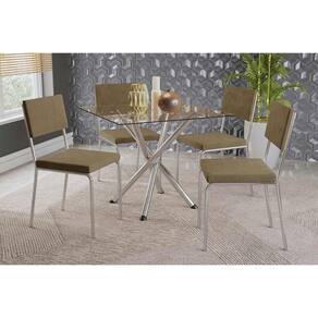 Sala de Jantar Completa Volga c/ Tampo de Vidro 90cm e 4 Cadeiras Zaria Cromada - Suede Bege - Kappesberg Abaixo segue os produtos do KIT: Sala de Jantar Completa Volga c/ Tampo de Vidro 90cm e 4 Cadeiras Zaria Cromada - Suede Bege - Kappesberg