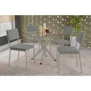 Sala De Jantar Completa Volga C/ Tampo De Vidro 90cm E 4 Cadeiras Zaria Niquel - Boucle Cinza - Kappesberg
