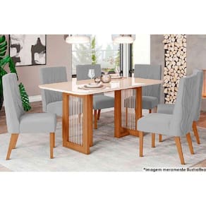 Sala de Jantar Completa Yara c/ Tampo Madeirado c/ Vidro Curvo 160x90cm e 6 Cadeiras Eloa Nature/Suede Light Linho - Henn Abaixo segue os produtos do KIT: Sala de Jantar Completa Yara c/ Tampo Madeirado c/ Vidro Curvo 160x90cm e 6 Cadeiras Eloa Nature/Suede Light Linho - Henn