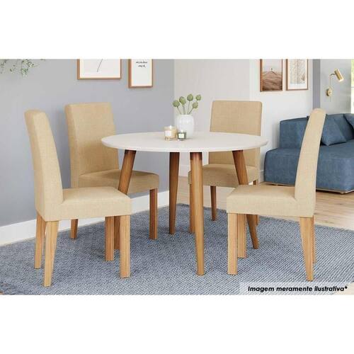 Sala de Jantar Completa Dani c/ Tampo Madeira Maciça 110cm e 4 Cadeiras Maia Nature/Suede Gengibre Bege - Cimol Abaixo segue os produtos do KIT: Sala de Jantar Completa Dani c/ Tampo Madeira Maciça 110cm e 4 Cadeiras Maia Nature/Suede Gengibre Bege - Cimol